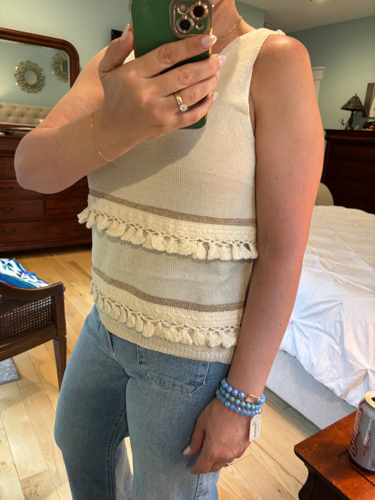 Sleeveless Knit Sweater with Tassels