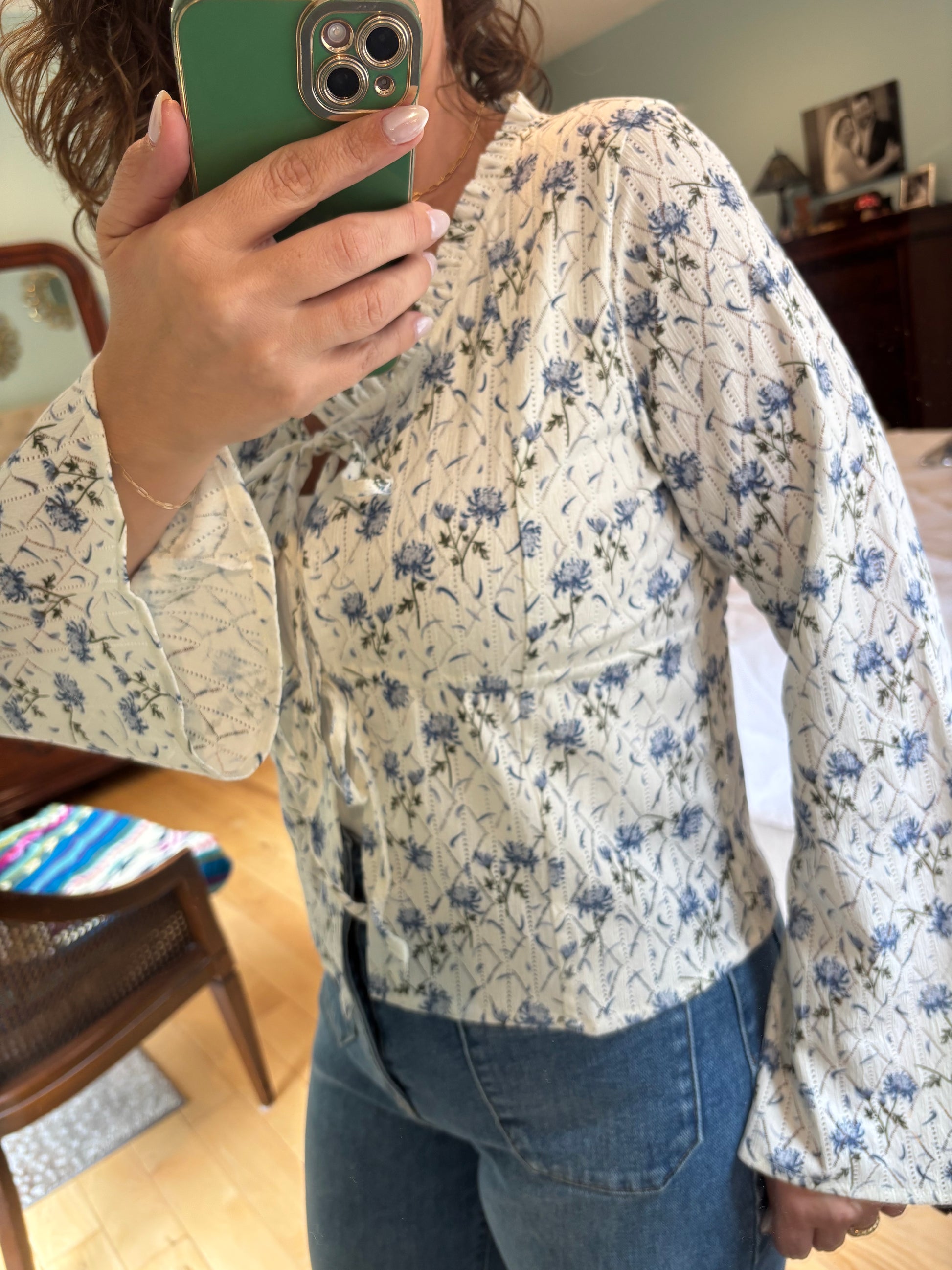 Medium stretch. True to size. Bell sleeves.