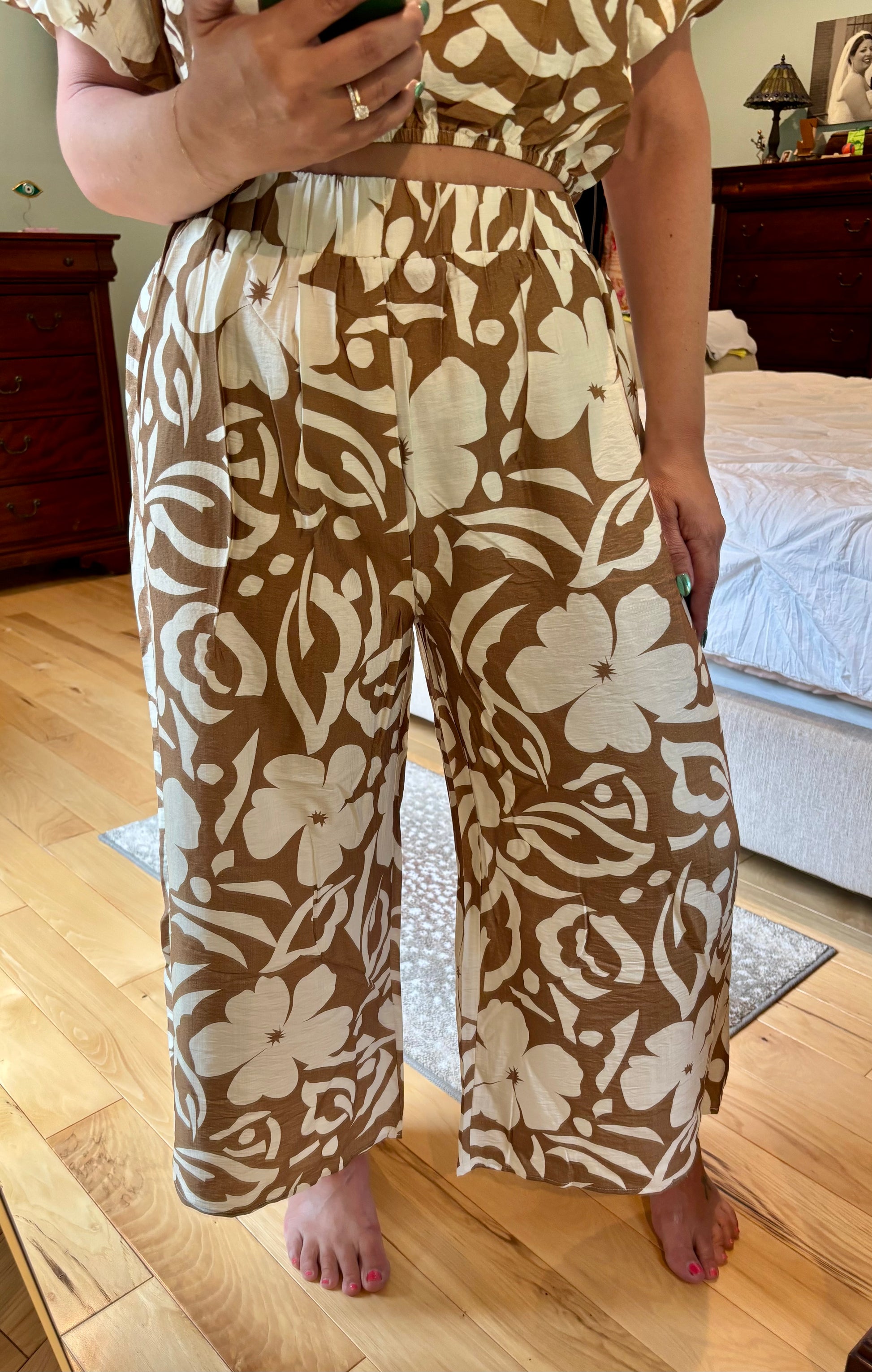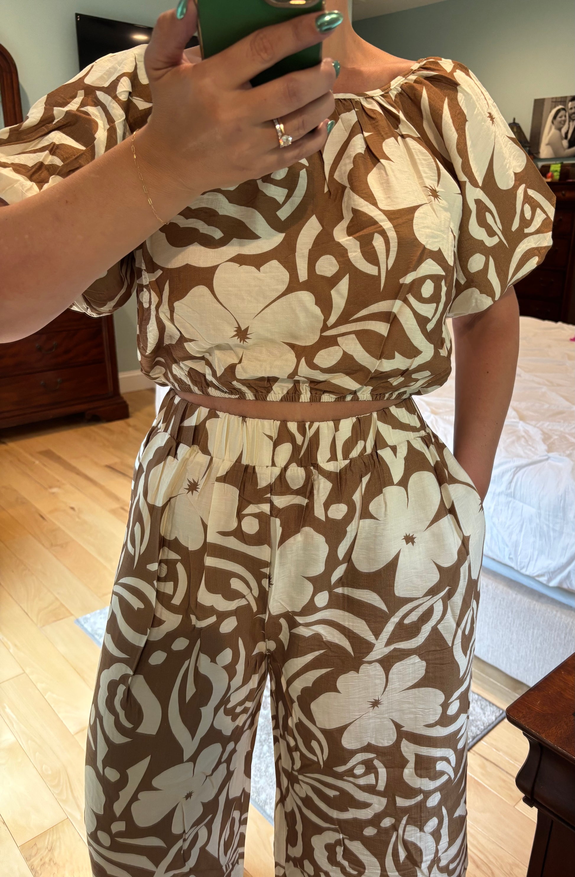 A beautiful matching lightweight set. True to size. Perfect for parties, backyard bbq, or vacation. Show as much or as little midriff as you’d like! Bottoms are a cropped length. Top has button closure at the neck. I’m wearing my true size medium.